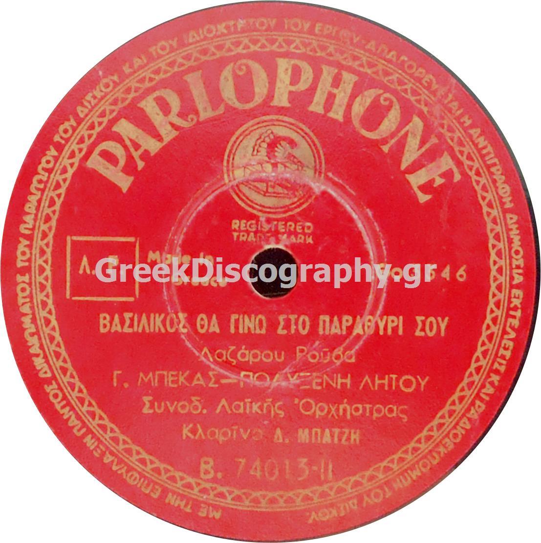 B-74013 ΒΑΣΙΛΙΚΟΣ ΘΑ ΓΙΝΩ ΣΤΟ ΠΑΡΑΘΥΡΙ ΣΟΥ