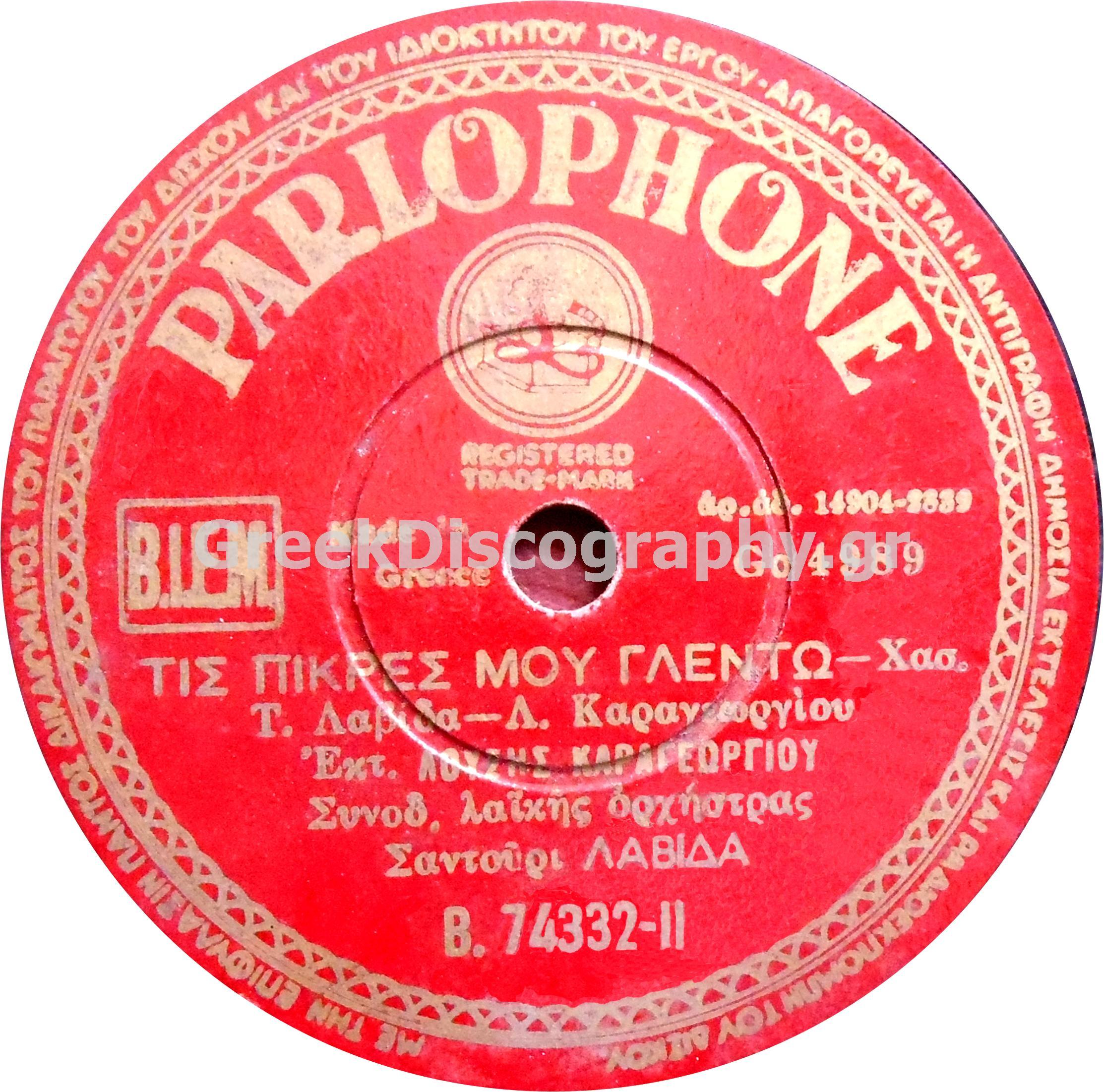 B-74332 ΤΙΣ ΠΙΚΡΕΣ ΜΟΥ ΓΛΕΝΤΩ