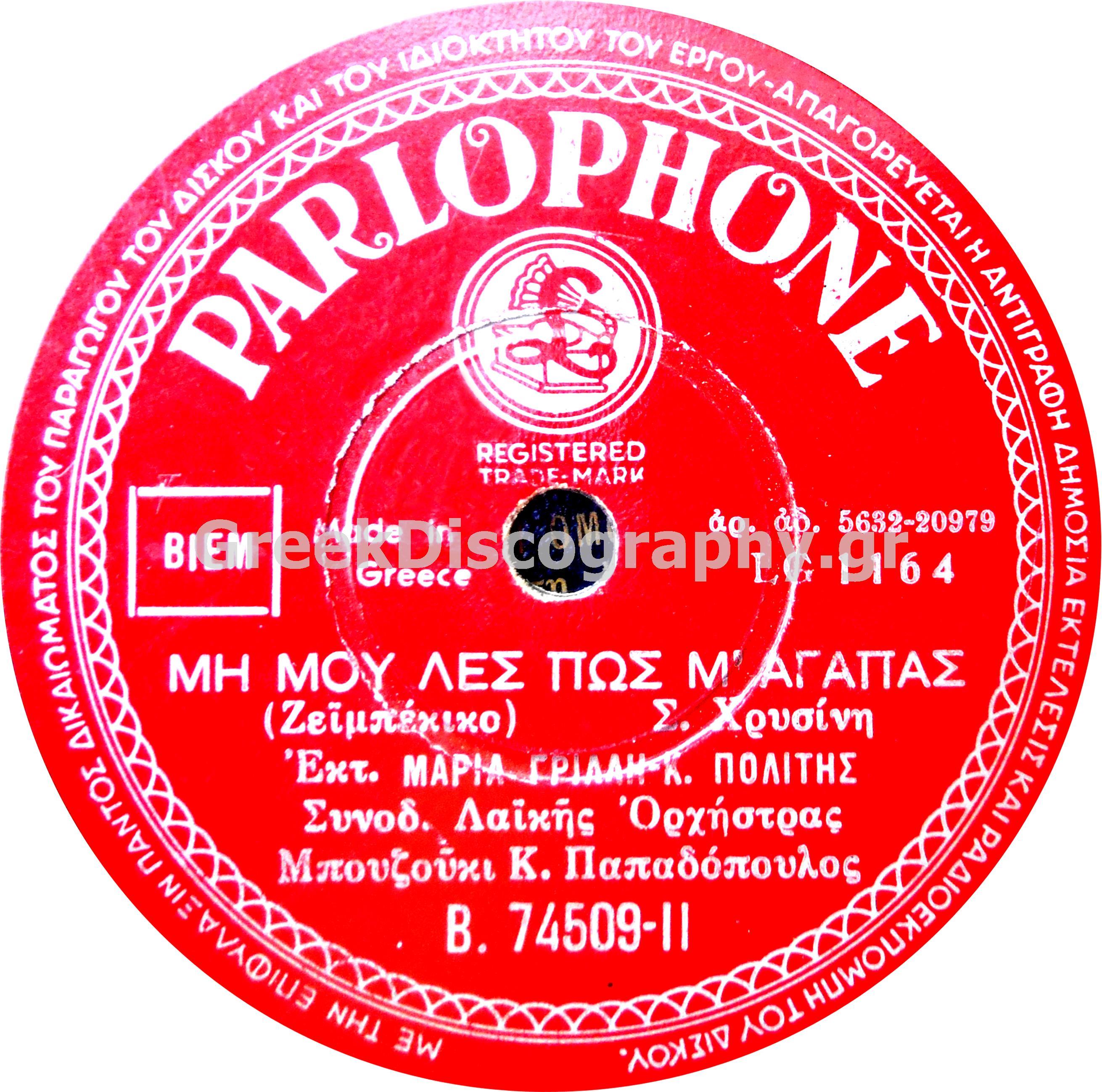 B-74509 ΜΗ ΜΟΥ ΛΕΣ ΠΩΣ Μ ΑΓΑΠΑΣ