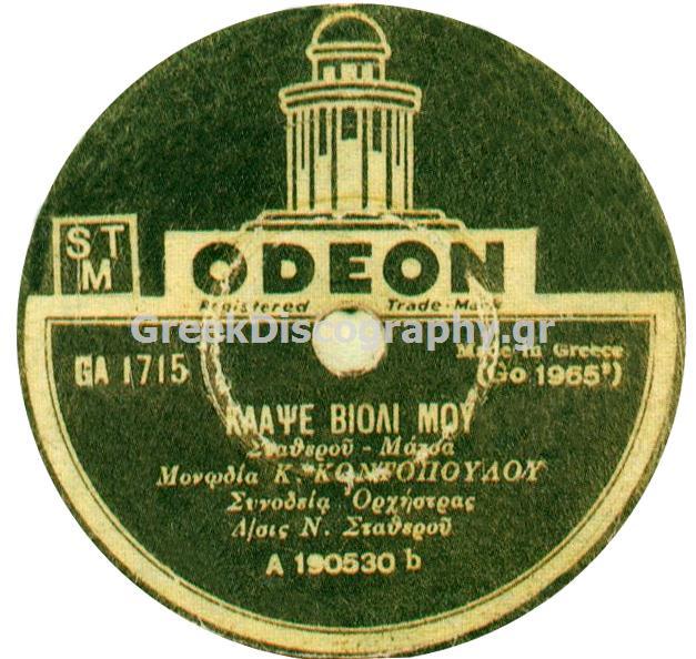 • 14717. Κλάψε βιολί μου - Σταθερός Ν. - Κοντόπουλος Κ. - GA-1715
