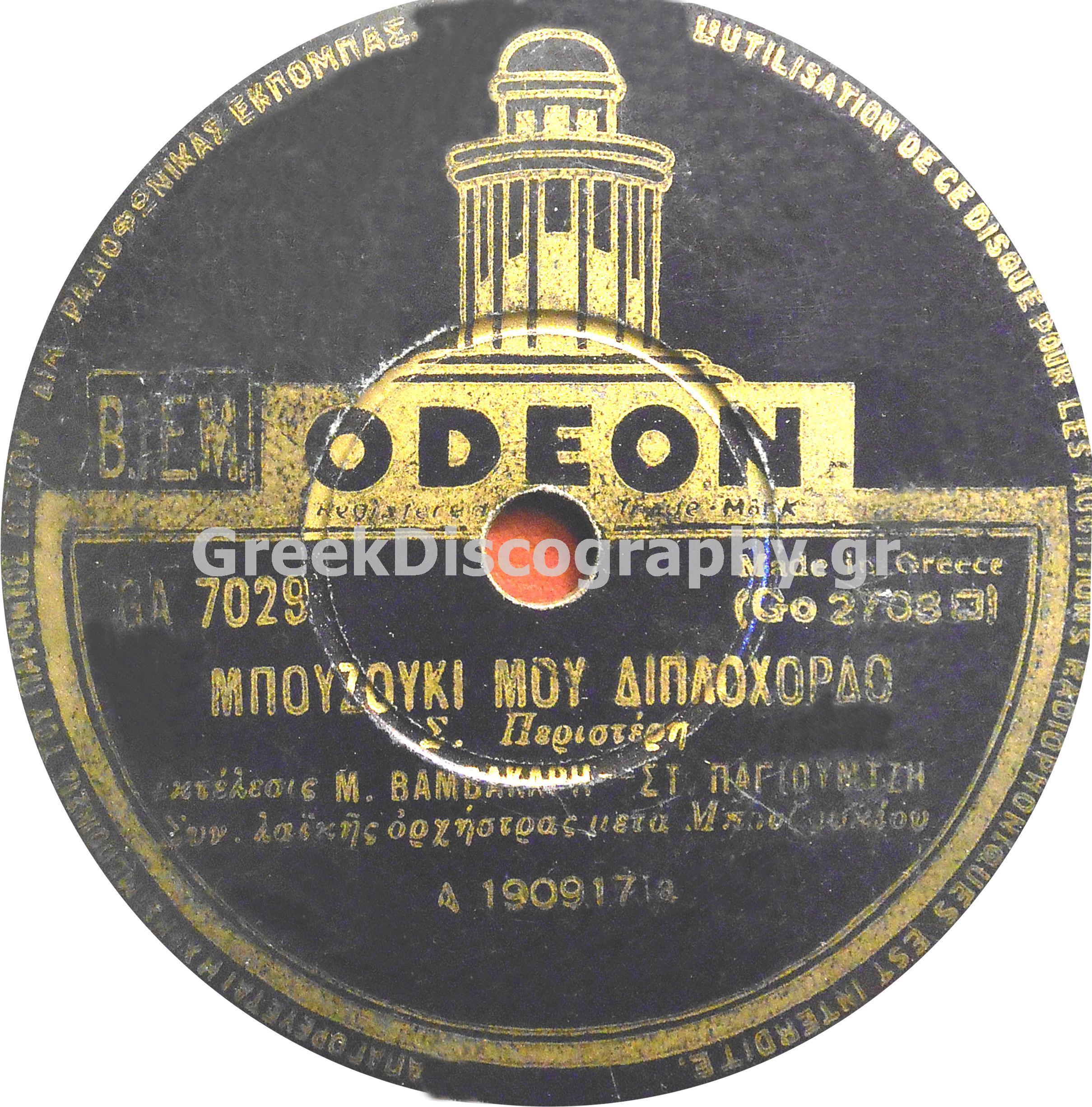 • 12773. Μπουζούκι μου διπλόχορδο - Βαμβακάρης Μ. - Βαμβακάρης Μ. - GA-7029