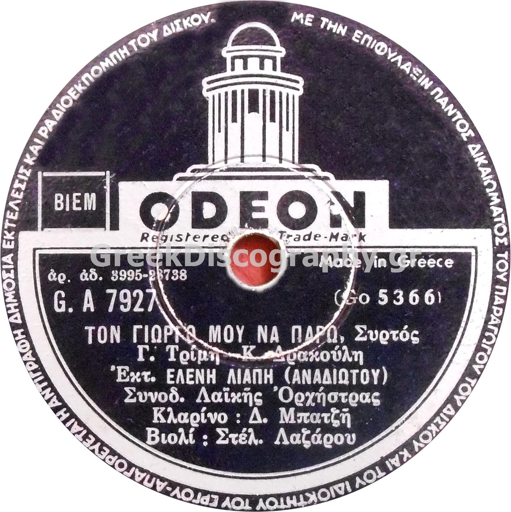 GA-7927 ΤΟΝ ΓΙΩΡΓΟ ΜΟΥ ΝΑ ΠΑΡΩ