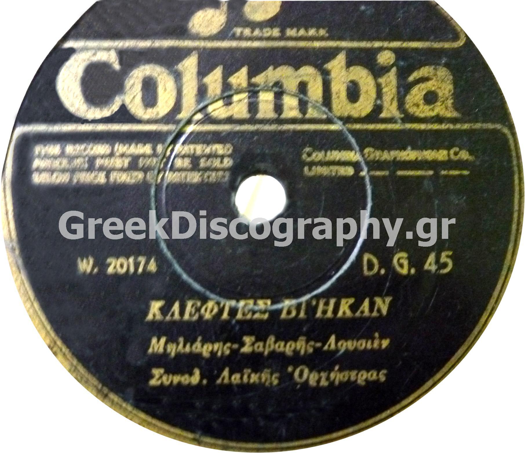 • 18737. Κλέφτες βγήκαν στο βουνό - _ΠΑΡΑΔΟΣΙΑΚΑ - Μηλιάρης. - DG-45 & Col-8217