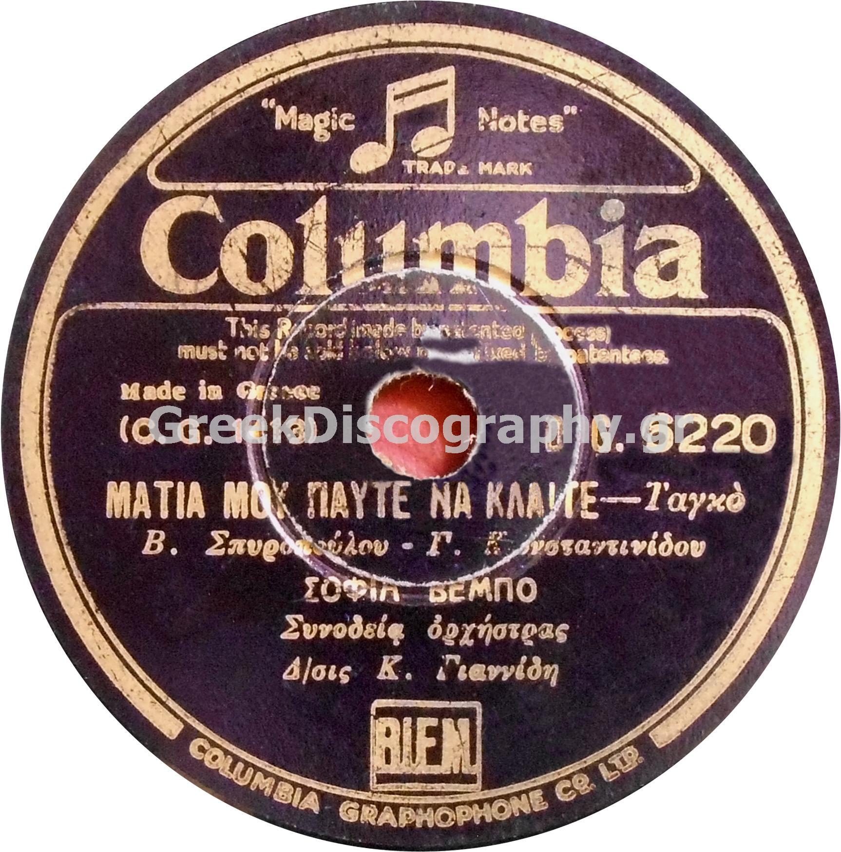 DG-6220 ΜΑΤΙΑ ΜΟΥ ΠΑΥΤΕ ΝΑ ΚΛΑΙΤΕ