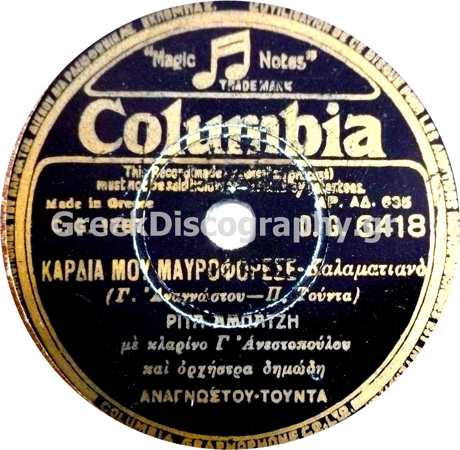 • 17973. Καρδιά μου μαυροφόρεσε - Τούντας Π. - Αμπατζή Ρ. - DG-6418