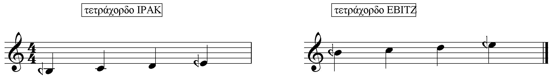 Οι δύο τονικότητες παρατίθενται παράλληλα στο ακόλουθο παράδειγμα για ευκολία συγκρίσεως, γραμμένες χωρίς οπλισμούς αλλά χρησιμοποιώντας τα απαιτούμενα τυχαία σημεία αλλοιώσεως.
