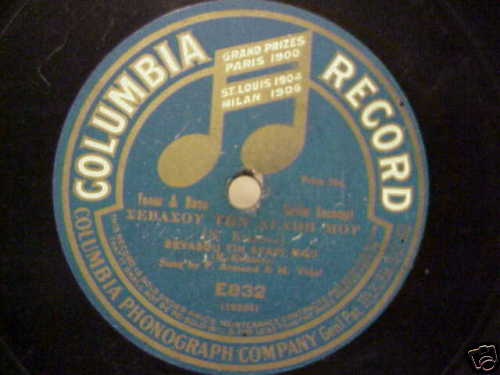 Στο παραπάνω pdf συναντάμε τους πρώτους δίσκους ελληνικού ενδιαφέροντος στο φύλλο 41 και από τους αριθμούς κυκλοφορίας Ε-830 έως Ε-834. Τα στοιχεία αφορούν 5 δίσκους με 10 τραγούδια και οι ηχογραφήσεις τοποθετούνται στον Ιανουάριο-Απρίλιο-Μάιο- του 1911. Από την αναζήτηση που έκανα βρήκα την ετικέτα από ένα μόνο τραγούδι και συγκεκριμένα το "Σεβάσου την αγάπη μου" με στοιχεία δίσκου Ε-832/19206-2. Η ημερομηνία ηχογράφησης δίνεται η 16η Ιανουαρίου 1911 και φαίνεται να συμφωνεί με αυτή την ιστοσελίδα